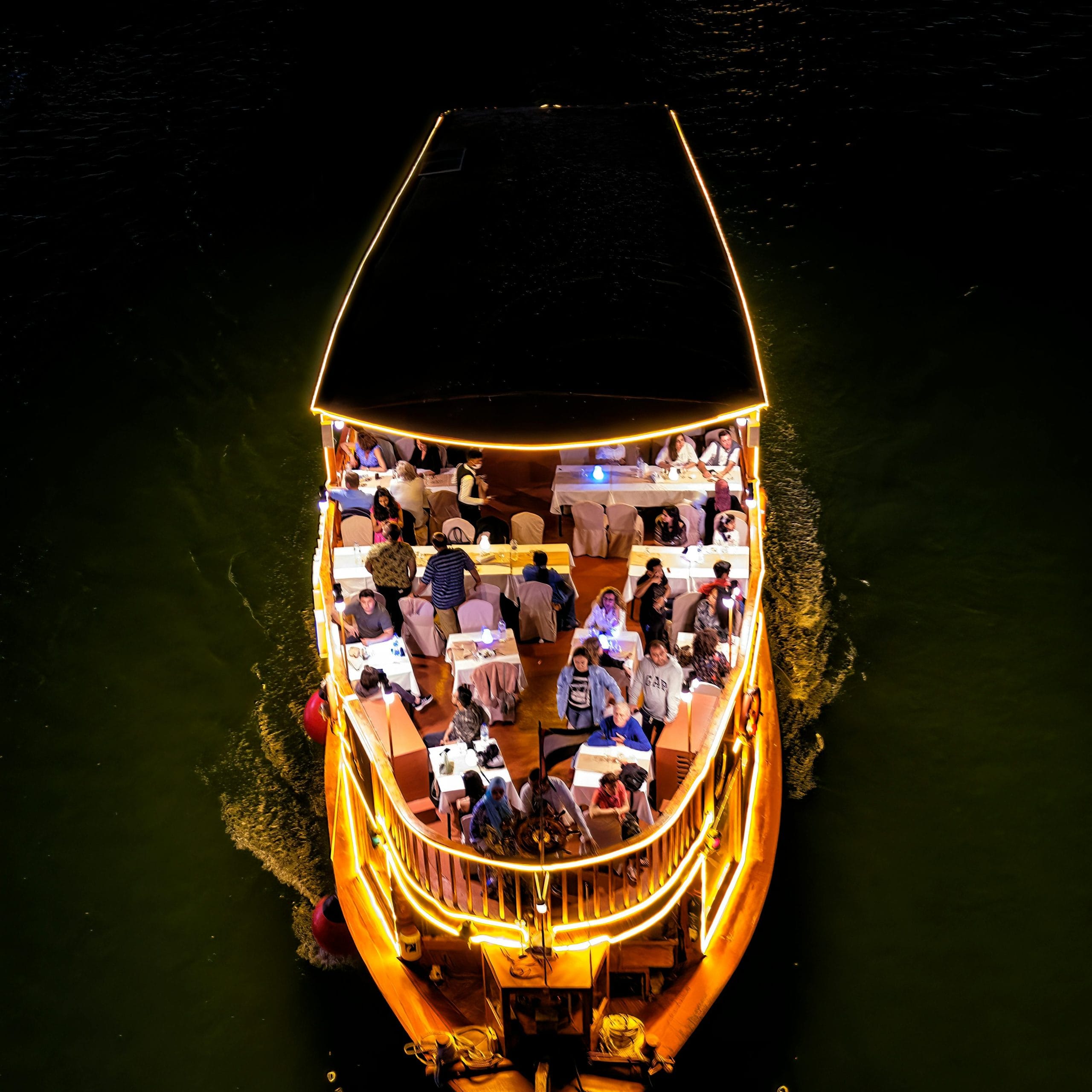 ✔🚢 Dhow Cruise Dinner – Traditional boat cruise with buffet, music, and Dubai Creek views